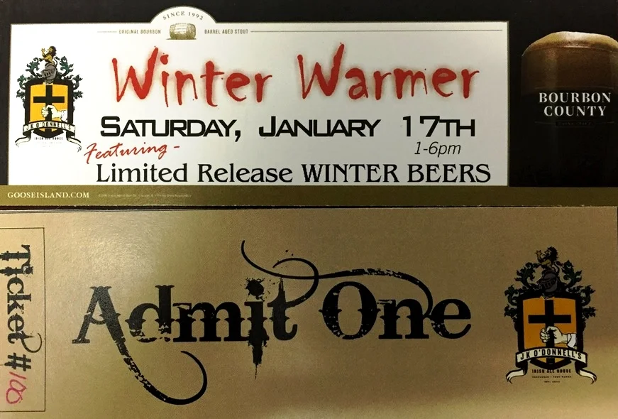 ✚ gCal ✚ iCal J K O'Donnell's second annual Winter Warmer will be held in a heated tent behind the pub. Advance tickets will get you a beer stein and $20 worth of beer. Tickets HERE